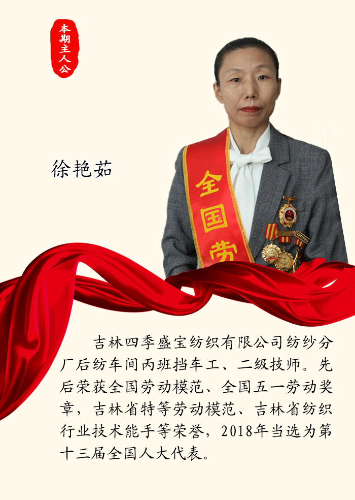 身材嬌小,但意志堅(jiān)定,是這位紡織女工給人的最直觀印象。1993年初中畢業(yè)的徐艷茹進(jìn)入了白城市紡織廠,成為了一名細(xì)紗擋車工。細(xì)紗擋車工作非常辛苦,接頭、換粗紗、預(yù)防斷頭和清潔機(jī)臺,每一道工序都容不得半點(diǎn)馬虎,必須仔細(xì)認(rèn)真。徐艷茹堅(jiān)持早到晚退半小時(shí),認(rèn)真做好交接及準(zhǔn)備工作,每次看機(jī)臺巡回走路十公里。