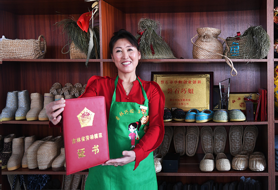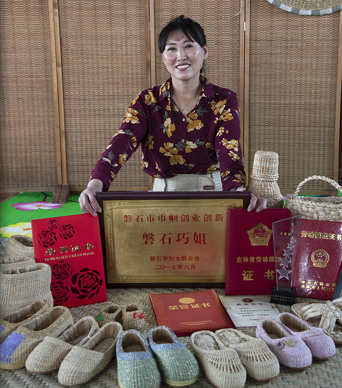 草編工藝不僅可以幫助老鄉增收致富,更是對傳統民間工藝的傳承發展。劉立敏研制的草鞋已有25款獲得了吉林省版權局認證,2019-2020連續兩年獲得吉林省草編大賽銅獎?,F在,劉立敏組織姐妹們不斷地研究新產品,她希望通過草編手藝傳承,帶領更多姐妹脫貧致富,為鄉村振興盡自己的一份力量。