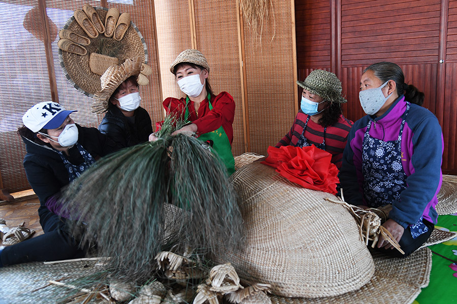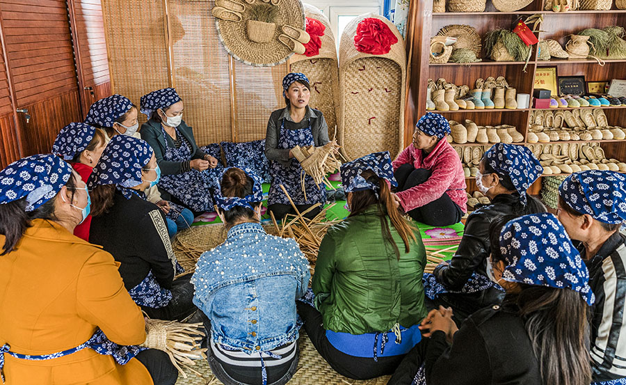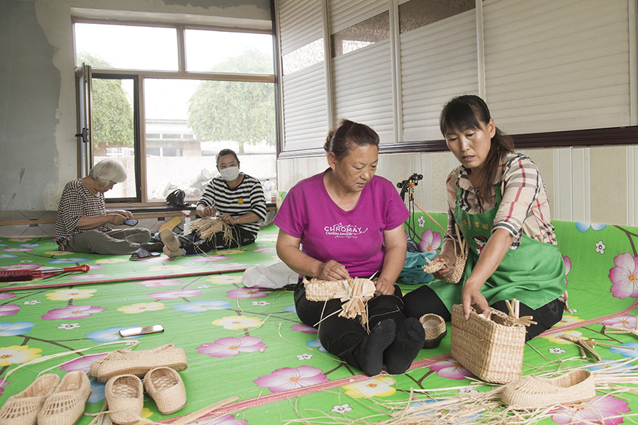 挑草、摘剝、編制、打綹、收口……一雙雙精美的草鞋,呈現在劉立敏巧手之下。除了草鞋,劉立敏還開發出了草編床墊子、抱枕、汽車坐墊、鞋墊等63種產品,年收益達10萬余元。