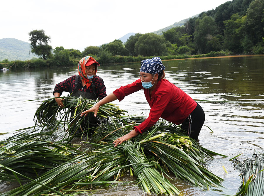 2009年,劉立敏開始著手創業,她利用家鄉的香蒲草和烏拉草做原材料,開發草編產品。每年夏秋時節,她便帶領大家到河邊收割香蒲草,蒲草蕩水霧縈繞、泥濘難行,細軟的沙土容易讓人深陷其中,劉立敏說:“水最深的地方,我先進!”困難而辛苦的工作,她總在走在最前面。