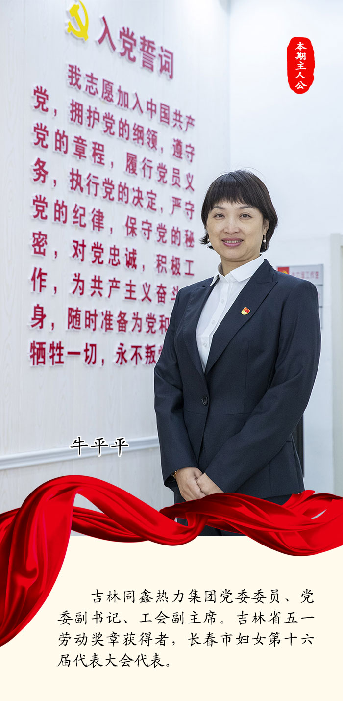 2004年,牛平平來到吉林同鑫熱力集團股份有限公司工作。經(jīng)過17年的努力,讓她從職場小白轉(zhuǎn)變成了企業(yè)政工干部;17年的歷練,讓她變得干練、專注、剛毅。