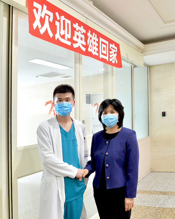 2020年新冠疫情暴發后,吉林大學第一醫院積極響應黨中央號召,先后派出10幾批醫療隊馳援武漢、滿洲里、吉林市、烏魯木齊。第一批隊員出發正值大年初二,身為工會常務副主席的楊桂英心系抗疫隊員,帶領她的工作團隊第一時間投入到慰問一線職工和家屬工作中,及時將關愛滿滿的慰問信和慰問金發送到隊員手中。隨著派出的醫療隊不斷增多,為了使關愛服務做細做實,她向醫院120余名基層工會干部發出倡議書,帶領40個基層工會小組對50余個科室268名出征隊員及家屬進行點對點精準服務,通過免費配送蔬菜、安裝寬帶、檢車、理發等措施幫助職工及家屬解決生活中的實際困難。她親自給在疫情前線的勇士和留守的家屬通電話,充分發揮了工會組織“娘家人”的作用。