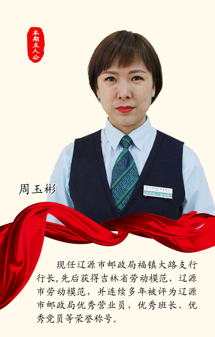 自2008年進入郵政銀行工作以來,周玉彬始終秉承著“面對面服務,真誠贏得客戶;心與心承諾,服務創造價值”的工作理念,用自己的熱心、耐心、細心、誠心默默奉獻與耕耘。2011年,周玉彬擔任遼源市郵政局山灣支行行長,為有效破解制約業務發展瓶頸因素,確保業務經營持續穩健發展,她緊緊圍繞當地經濟發展新趨勢和同業競爭新動向,著力實施“三步走”的營銷策略。短短三年時間,所里余額從4500萬飛速增長到18000萬。
