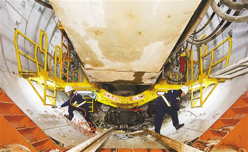 ④長春軌道交通2號線東延東樞紐站,施工人員在盾構區間內施工。吉林全力打造城市“公交便民”工程,群眾出行更安全便捷了。賈春文攝(中經視覺)