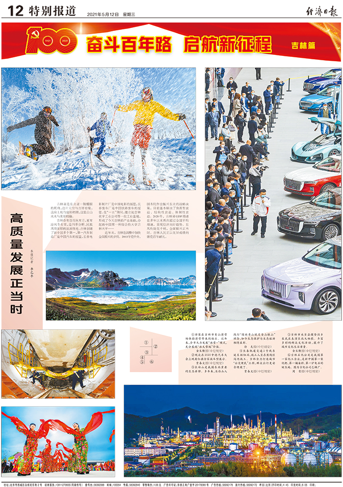 今天,經濟日報用4個整版推出“奮斗百年路 啟航新征程”吉林篇。
