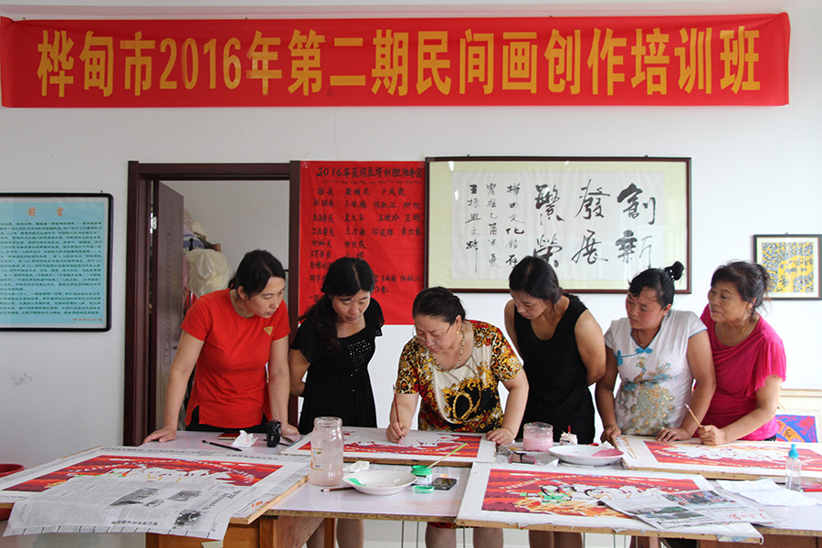 為了能讓樺甸民間畫走得更遠,康梅花針對色彩保存期短、技法單一、畫面缺乏層次感等問題,帶領創作骨干大膽創新,在傳統技法上加入了國畫和油畫的元素,如選擇宣紙、丙烯顏料作畫、運用水墨畫創作形式、使用揉紙技法等,讓單一創作的民間畫煥發了生機,即在保留構圖飽滿、形象質樸、色彩明快基礎上,延長了色彩保存期,讓它擁有了柔性和紋理質感的藝術效果,為單一的民間畫,增添一抹亮色。