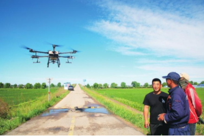 松原市寧江區毛都站鎮農民通過植保無人機進行水稻病蟲害防治。
