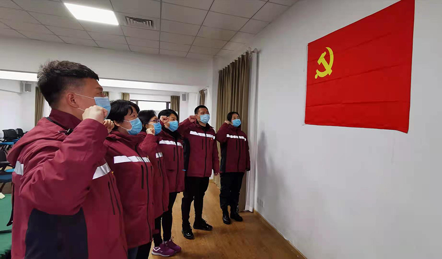 為了凝聚和振奮報道組成員的斗志和信心,讓黨旗在抗疫一線高高飄揚,李曉靜主持召開臨時黨支部會議,和大家一起重溫入黨誓詞,并積極組織防疫知識培訓等活動。