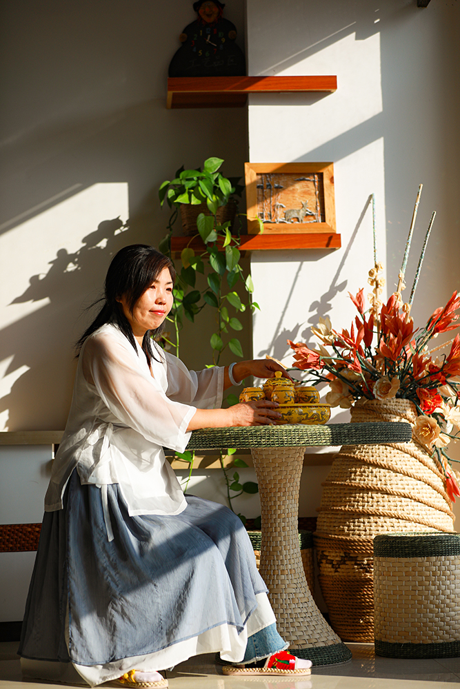 不久前,胡雙慶在草編文化體驗(yàn)店組織了朗讀會(huì),大家在這里喝茶、讀書、朗誦,身邊是淡淡的芳草清香……