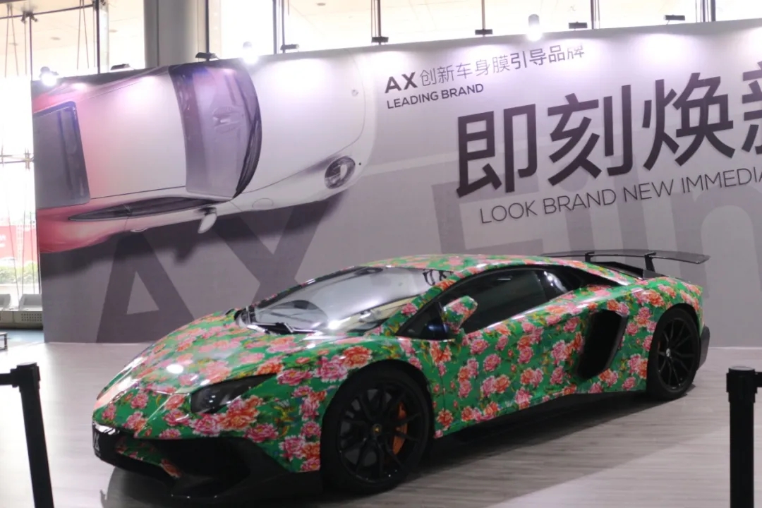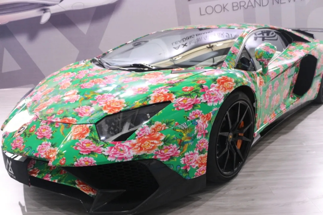 在汽博會的2號豪車展館內,一輛貼滿極具東北特色“紅綠花襖”圖案的蘭博基尼跑車十分醒目。這輛十分接地氣又喜慶的蘭博基尼跑車一時間成為展館里“超火”的網紅,吸引了無數人駐足拍照,合影留念。