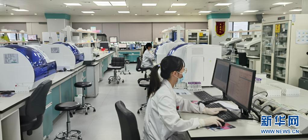 7月17日拍攝的廣州市金域醫(yī)學臨床血液實驗室(手機照片)。新華社記者 丁玫 攝