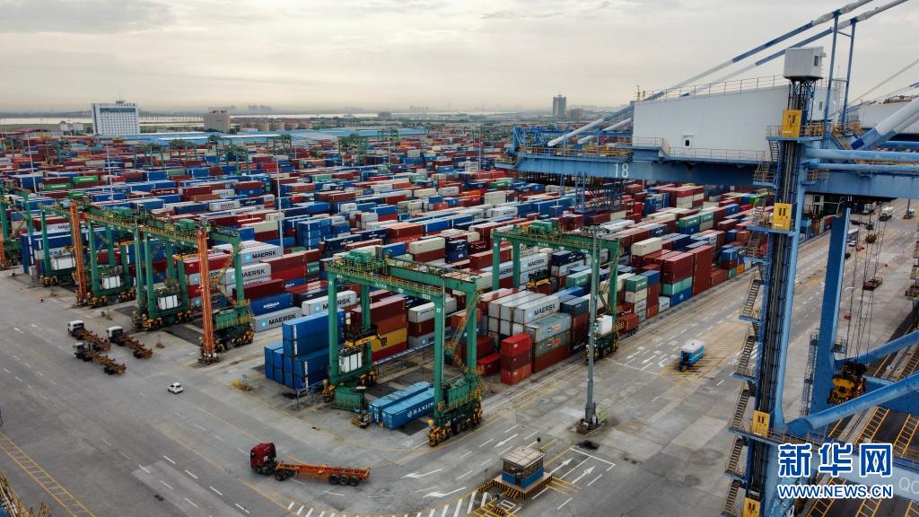 7月17日拍攝的廣州港南沙港區(qū)碼頭堆場(無人機照片)。新華社記者 耿馨寧 攝