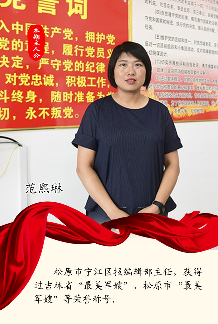 忙碌的新聞人、孝順的女兒、兩個孩子的媽媽、社區的志愿者……軍嫂范熙琳用自己的柔肩,分擔了丈夫的所有后顧之憂。張文博先后榮立了3次三等功,軍功章的背后寫滿她默默的支持和理解……