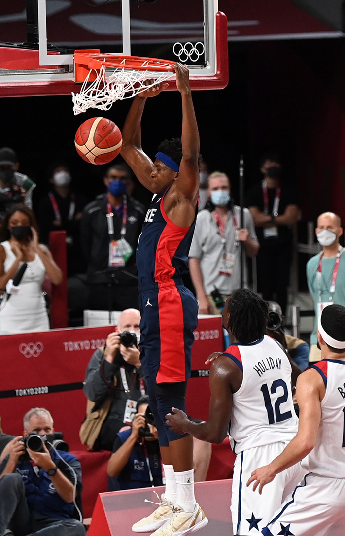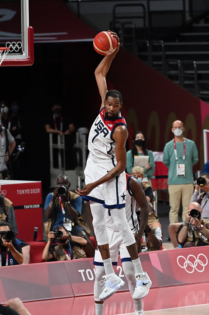 本屆東京奧運會,美國男籃首場就被法國隊擊敗。兩年前的男籃世界杯,沒有大牌明星參加,“咎由自取”的美國隊也正是被法國男籃淘汰。世錦賽淘汰教訓讓美國男籃在奧運會上重新組建,陣容中再次出現像杜蘭特這樣的頂級巨星,還包括像是利拉德、塔圖姆、布克等聯盟中的當紅球員。盡管如此,美國隊晉級之路依舊磕磕絆絆。雖然最終奪冠,但是美國隊對其他隊從絕對碾壓變成了咬牙扛住,再難見當年的穩定從容。