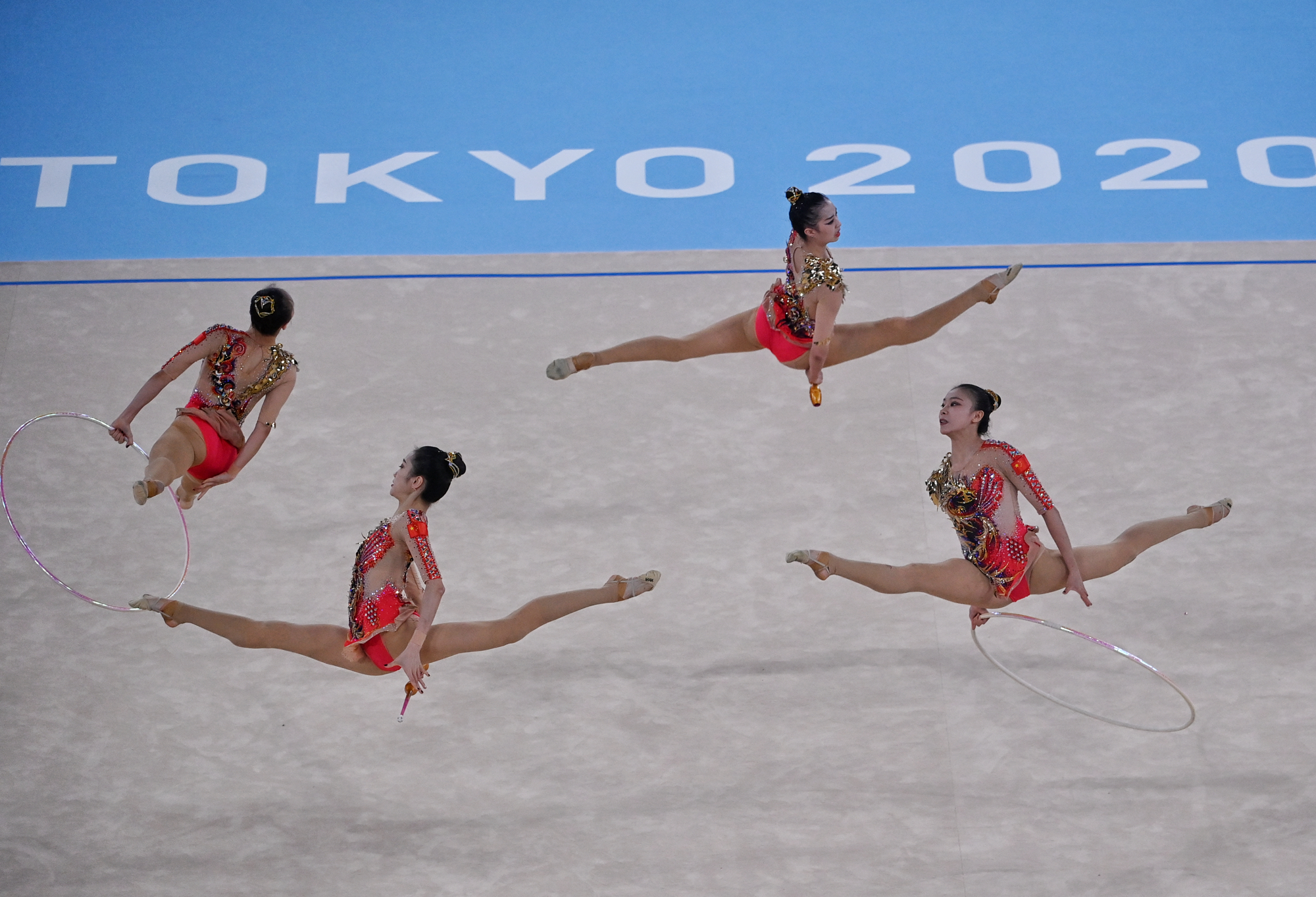 8月8日東京奧運會,中國隊演繹敦煌飛天,獲得藝術體操團體全能第四名。