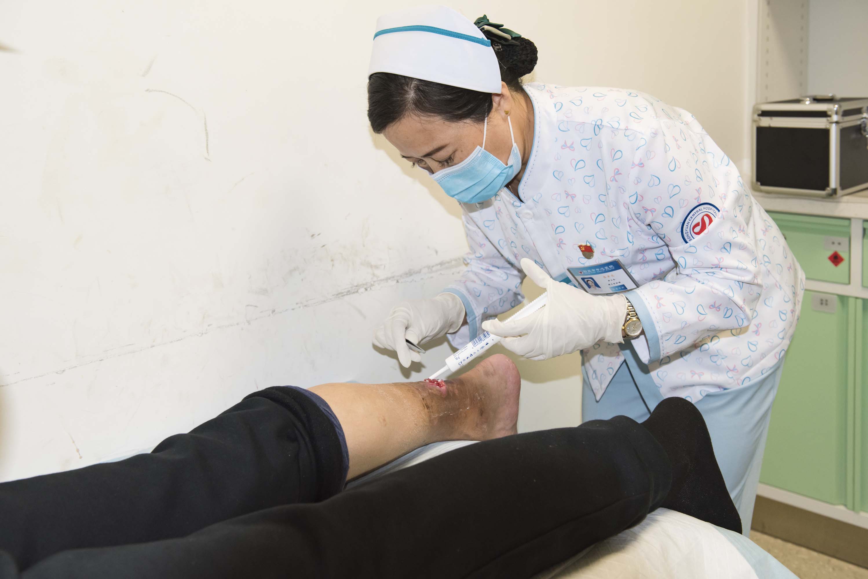 病患張大爺長期臥床不能自理,兩條腿形成了不可分期壓瘡,身體狀況極度不佳。張亞范得知情況后,主動上門為其處理傷口、換藥。臨走時,她拉著張大娘的手說:“您就放心吧,大爺的傷口交給我。”起初是每天換一次藥,一換就是兩個月,無論上班還是休息,無論晴天還是陰雨,每天她都按時去張大爺家。張大爺傷口好轉后,換藥的次數減為一周2至3次,她又堅持了4個多月。這樣的事例,在張亞范的經歷中,真是不勝枚舉。