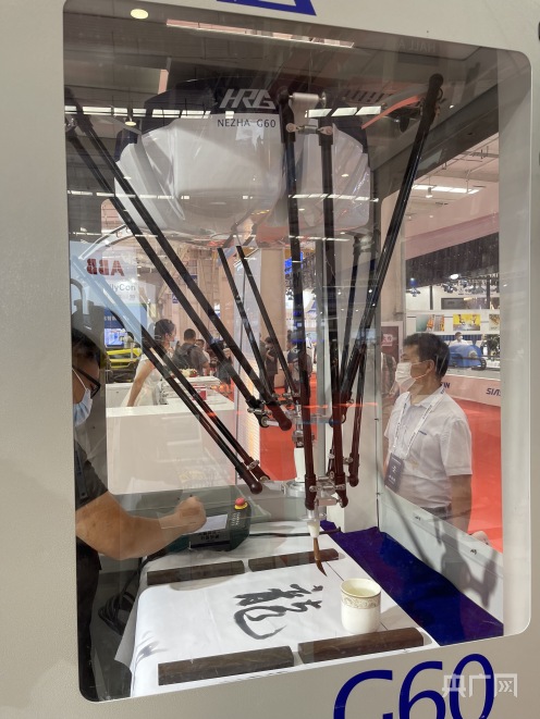 同時(shí)在哈工大機(jī)器人集團(tuán)展區(qū),這個(gè)用毛筆寫字的機(jī)器人也吸引了人群的目光。這是哈工大機(jī)器人集團(tuán)打造的輕巧型并聯(lián)共融機(jī)器人,由于具備輕巧靈活的特性,它甚至可以寫出游云驚龍的書法作品,令人拍案叫絕。這種機(jī)器人其實(shí)主要應(yīng)用于工廠中搽膠、打磨等工藝環(huán)節(jié),目前已在制鞋業(yè)投入使用。據(jù)哈工大機(jī)器人集團(tuán)股份有限公司執(zhí)行總裁王洪波介紹,此前國(guó)家和產(chǎn)業(yè)界人士關(guān)注比較多的還是集中在核心零部件,但現(xiàn)在隨著機(jī)器人產(chǎn)業(yè)的發(fā)展,越來(lái)越多關(guān)注感知和通訊層面,對(duì)機(jī)器人的要求也越來(lái)越高。王洪波認(rèn)為關(guān)注機(jī)器人產(chǎn)業(yè),未來(lái)可能要更多地關(guān)注產(chǎn)業(yè)鏈的上游。