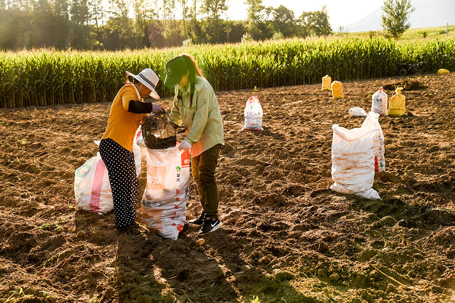 “大妹子,你看看我選的這些烏拉草、玉米葉,還可以不?”