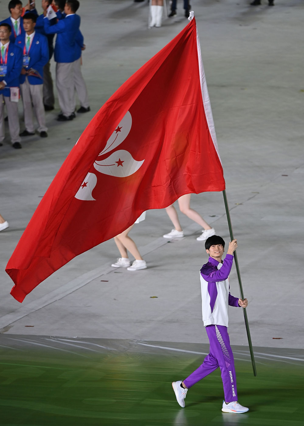 “你去國外比賽,中國香港代表團入場的時候,國外觀眾可能都不知道你,也不會關注你。但是前幾天在西安的(全運會)開幕式,哇,你看香港入場的時候,觀眾那么多人在歡呼,我們年輕的旗手也受到了那么多的訪問(采訪)。”他說。
