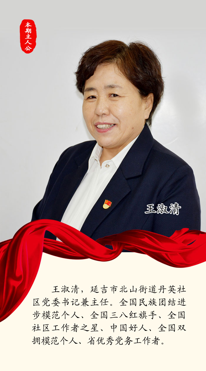 本期人物:王淑清,延吉市北山街道丹英社區黨委書記兼主任。全國民族團結進步模范個人、全國三八紅旗手、全國社區工作者之星、中國好人、全國雙擁模范個人、省優秀黨務工作者。