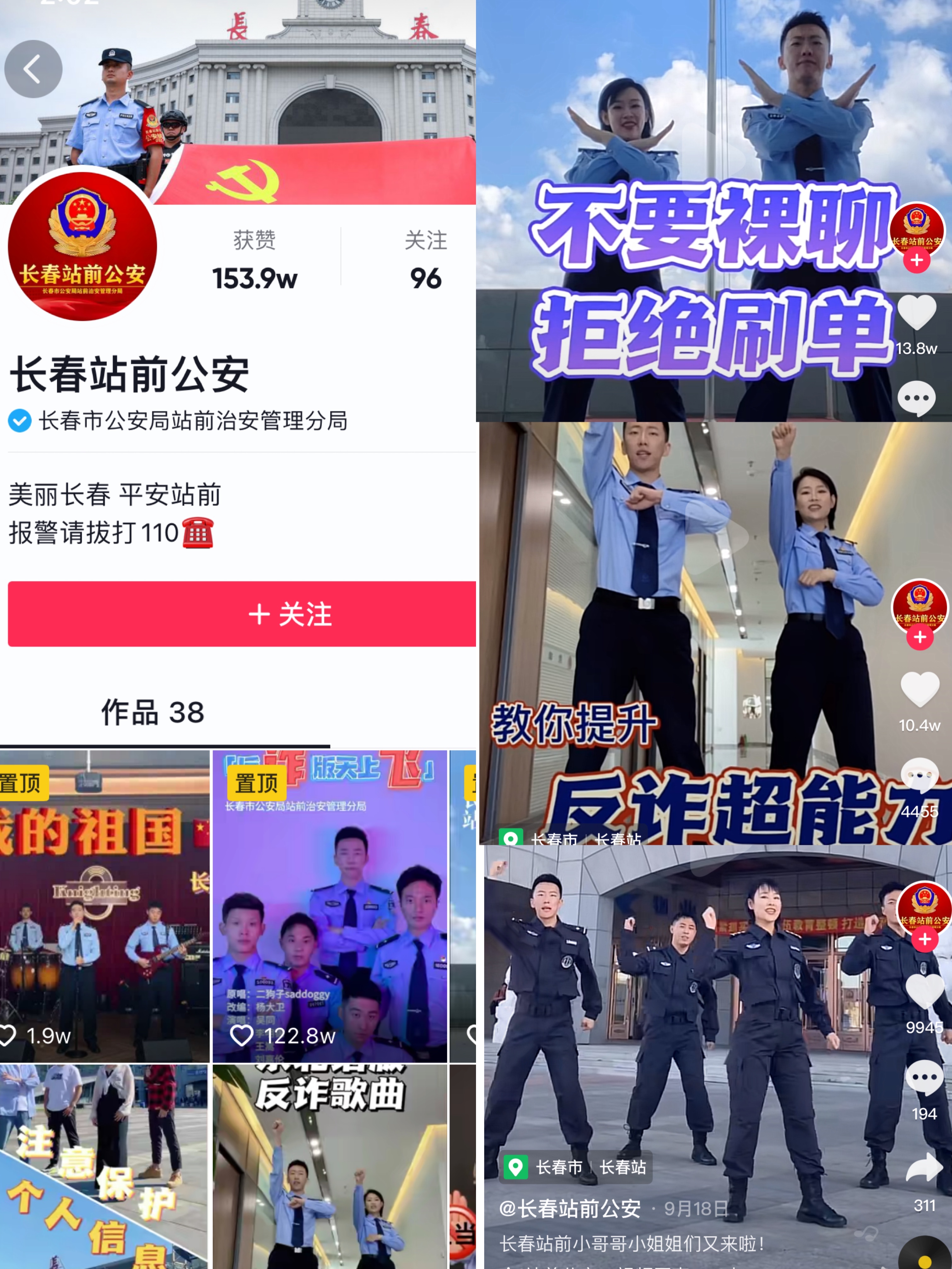 隨著信息技術的不斷發展,如何用老百姓易于接受的方式來開展反詐宣傳?長春市公安局站前治安管理分局政秘科民警王佳冶想到了當下正火的短視頻。從歌曲選定到歌詞改編,到舞蹈編排到角色扮演,從短視頻策劃到后期剪輯,站前治安管理分局的小哥哥小姐姐們十八般武藝樣樣精通,不僅穿得了“武裝”,也能穿得上“紅裝”,通過改編時下流行的熱門歌曲,針對未成年人、老年人等不同人群,分模塊、分批次推出優質短視頻作品,一首首入耳、入腦、入心的網紅反詐歌,讓普法宣傳唱出了時代的節奏。