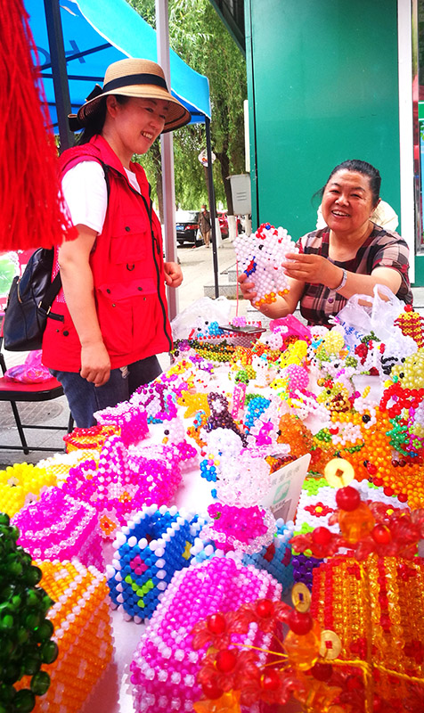 像王洪雁一家一樣,因串珠編織與任桂榮結緣的貧困家庭還有很多。家住拉法鄉的吳文梅也是其中一員,由于丈夫常年癱瘓在床,兒子在外上學,家庭的重擔就落在吳文梅一個人的肩上。得知吳文梅的情況,任桂榮主動到吳文梅家中免費現場傳授珠藝編織技術,贈送原料,并定期到她家中回收串珠工藝品,然后盡力到各地去賣。為了能幫助貧困家庭賣出更多工藝品,已經70歲的任桂榮起早貪黑,趕集市、蹲夜市,哪里有展銷會,她總是去得最早、收攤最晚的。談到其間辛苦,任桂榮總是淡然地說,“我就想著多賣點,讓更多的貧困戶受益。而且看著她們用自己的雙手創造幸福生活,對我來說,也是莫大的感動與激勵。”