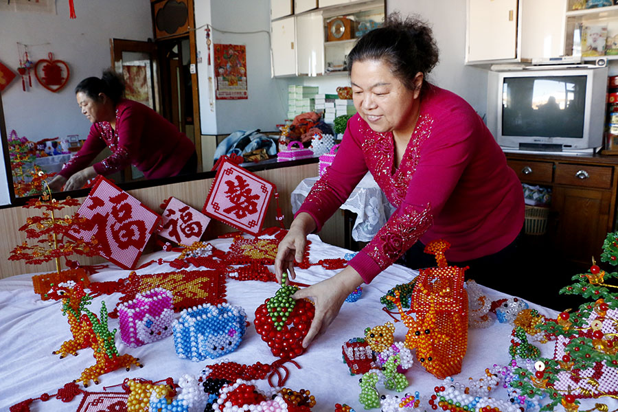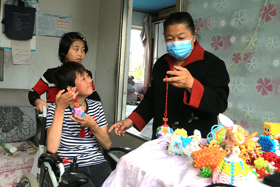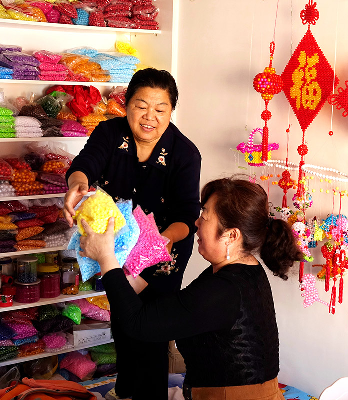 “人就要活到老,學到老!”這是任桂榮常常掛在口頭的話。為了給晚年生活“找點事兒干”,從護士長崗位退休后的任桂榮自學起了珠藝編織。一向做事認真的她,為了更好掌握編織技藝,開發新品,經常廢寢忘食日夜研究。連任桂榮自己也不曾想到,這個本不起眼的“業余愛好”,會成為她與貧困戶們割舍不下的“愛心紐帶”。
