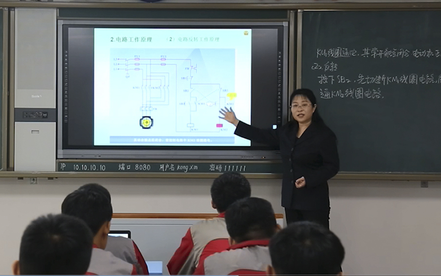一邊忙著競賽,一邊教學也不能落下。張立梅在教授電器元件的工作過程時發現,讓學生們看課本上的平面圖,或者手持教學模具授課,并不能讓學生直觀的理解知識。“上課做示范,學生們里三層外三層地圍著我,里三層能看到,那外三層是看不清楚的。”張立梅牽頭組織專業教師開發設計虛擬仿真教學軟件,與企業合作完成了多個虛擬仿真教學軟件的制作,提方案、寫腳本,反復修訂文字、圖片、動畫、視頻,經過無數個日日夜夜的努力,軟件終于投入使用。通過大屏幕,立體化展現了電器元件的工作狀態、機床控制線路通電工作情況等等,學生直觀了解電氣控制線路工作原理,學習的積極性和效率也大幅提升。