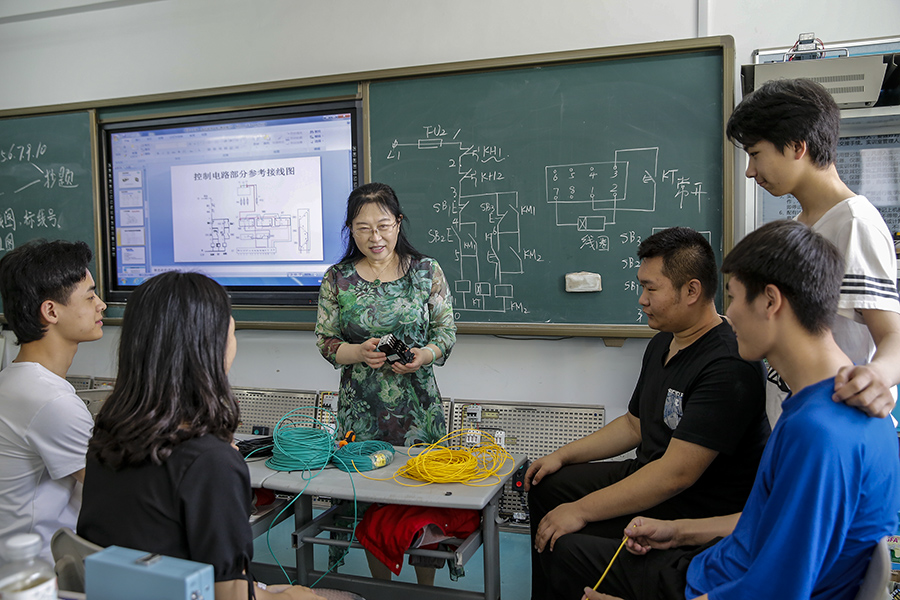 想成為一名合格的“工匠之師”,不僅要有扎實的專業理論知識、精湛的專業實踐技能,還要具備卓越的育人能力。張立梅不僅承擔教學任務、指導學生技能競賽,還擔任著班主任工作。授課的同時,也在潛移默化地培育學生們的品格,講到機床電氣控制,就會與學生們聊到中國近代民族工業發展的艱難歷史;講到電子技術,就會與學生們探討當今國際高新技術的激烈競爭。“吾輩當自強,你們要靠勤勞的雙手,成長為對社會有用的人。”張立梅愿一直托舉著學生們,使他們成為技藝精湛、素質過硬的新型技術技能人才,成為未來的“大國工匠”。