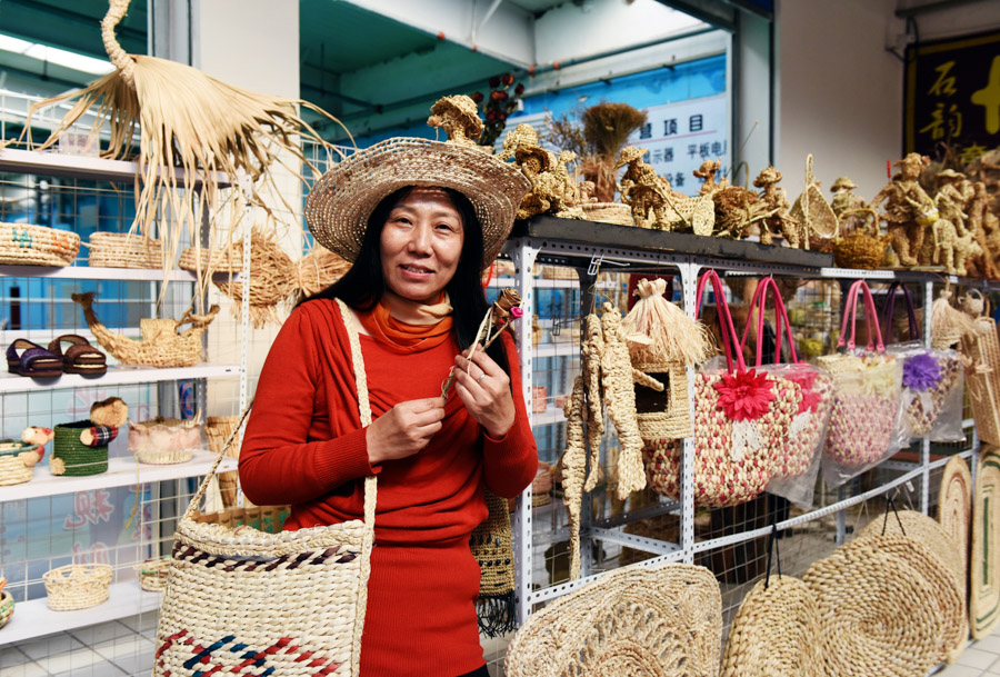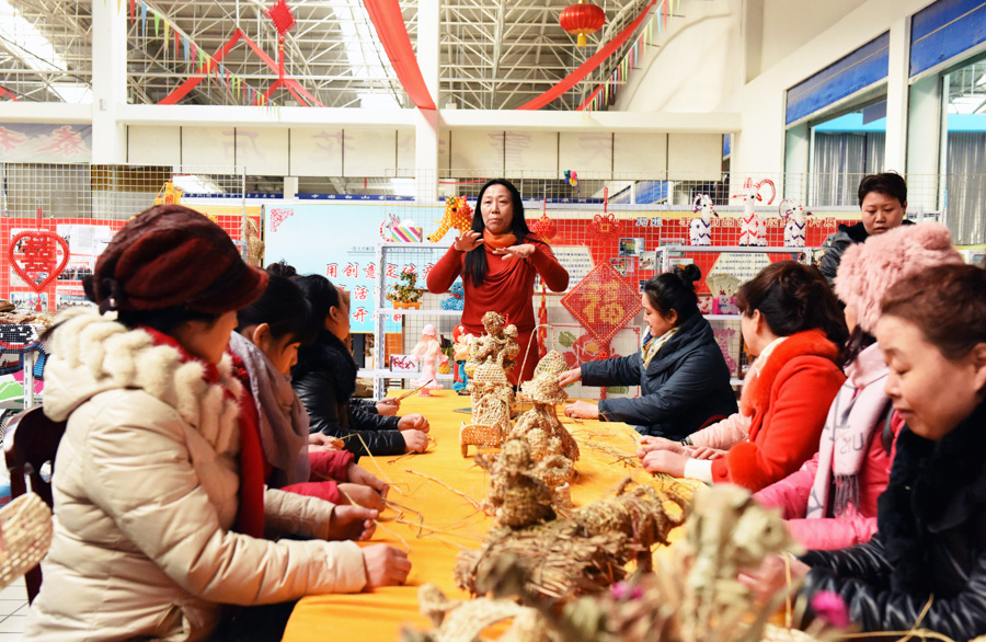 可較高的原料成本卻難住了當時手頭拮據的李金枝,正當犯難的時候,一個突發“奇想”再次讓李金枝燃起希望。吉林是農業大省,秋收過后到處都是無人問津的玉米葉,何不把這些玉米葉、蒲草等變廢為寶,編織成工藝品或生活家居用品,既節省了原料費,又環保實用。于是,李金枝用一雙巧手編織起了她的創業路。