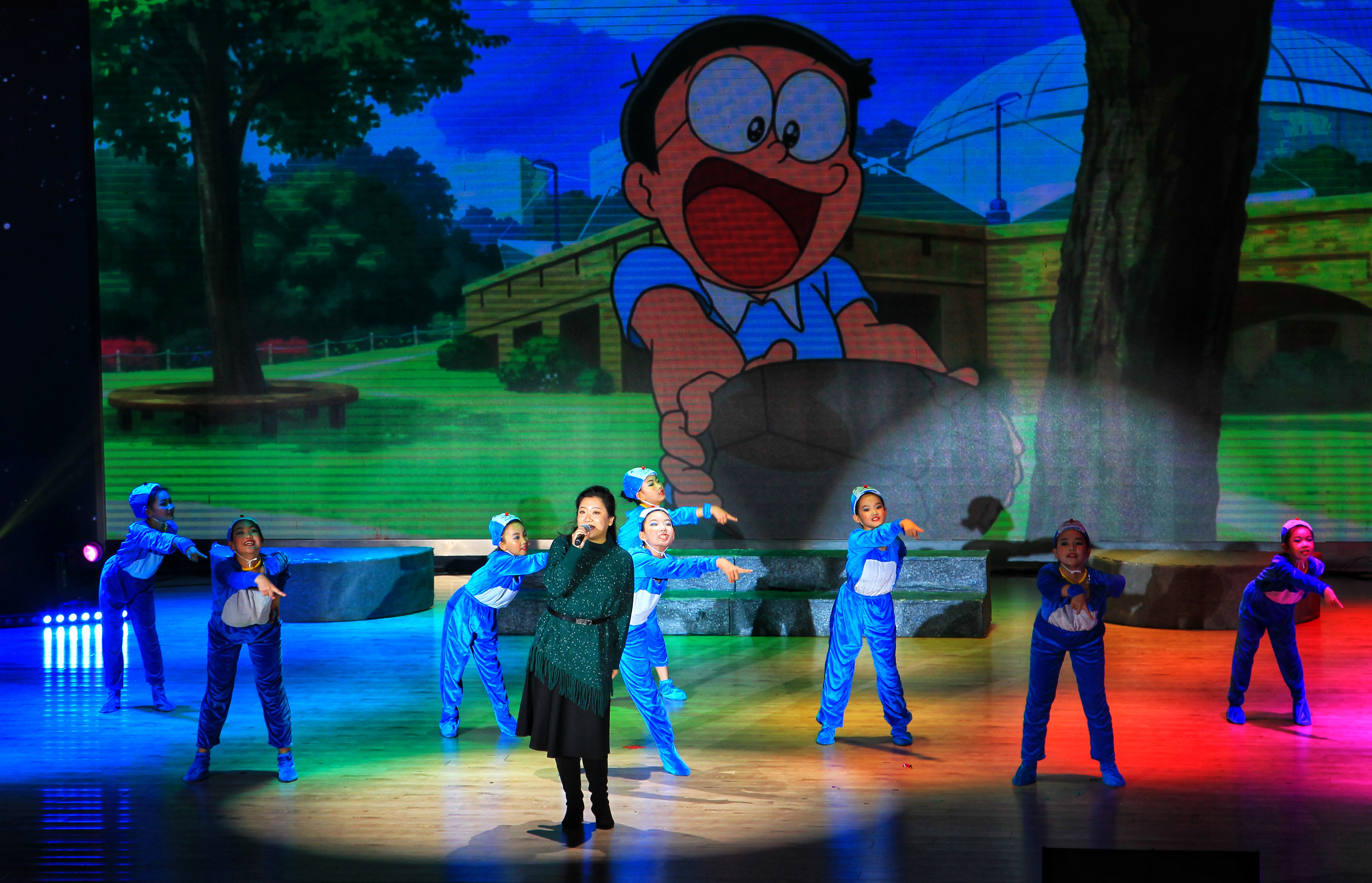 晚會中,年屆八旬依然堅守在譯制配音事業崗位上的長影譯制片廠配音藝術家潘淑蘭、隋桂鳳,原聲再現動畫電影《大魚海棠》《你的名字》中的配音片斷,引發全場掌聲致敬。國家一級演員劉之冰、青年朗誦演員馮巍分別帶來朗誦《致祖國》《祖國啊,我親愛的祖國》,深情訴說令人動容。歌手昊月、王宏兵傾情獻唱,歌聲大氣豪邁。從長影譯制片廠少兒語言藝術訓練營走出的小學員們,帶來了青少兒動漫配音表演,活潑生動的演繹贏得全場掌聲。