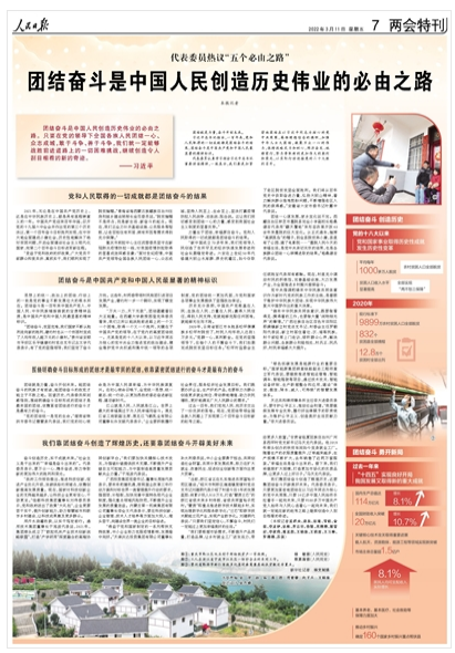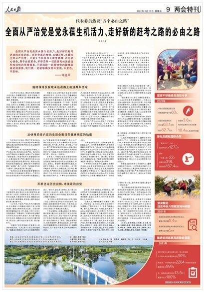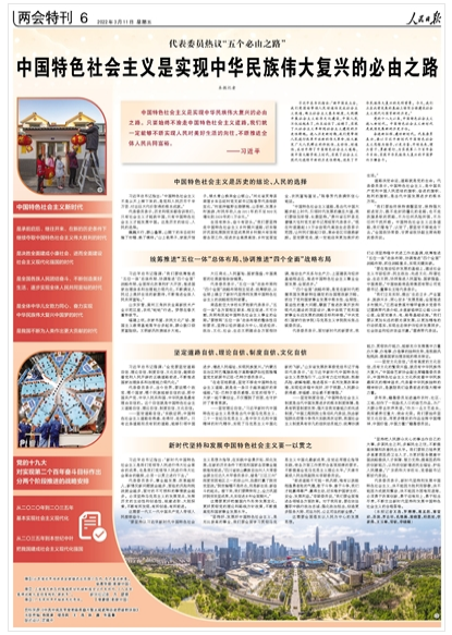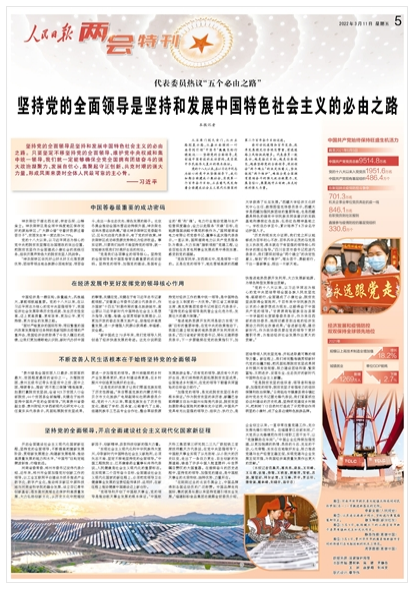 3月5日,習近平總書記在參加十三屆全國人大五次會議內蒙古代表團的審議時,回顧新時代黨和人民奮進歷程,鮮明提出“五個必由之路”重大論斷,引發(fā)代表委員熱議。人民日報兩會特刊今日以五個整版的篇幅刊發(fā)《代表委員熱議“五個必由之路”》,聚焦“堅持黨的全面領導是堅持和發(fā)展中國特色社會主義的必由之路”“中國特色社會主義是實現(xiàn)中華民族偉大復興的必由之路”“團結奮斗是中國人民創(chuàng)造歷史偉業(yè)的必由之路”“貫徹新發(fā)展理念是新時代我國發(fā)展壯大的必由之路”“全面從嚴治黨是黨永葆生機活力、走好新的趕考之路的必由之路”。