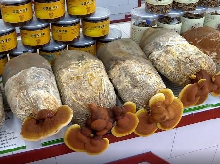 據了解,今年年初,德惠市五臺鄉狼洞村黨總支引進了靈芝項目,帶領村民們一起發展靈芝種植產業,并成立了德惠市仙芝靈農業種植專業合作社。為了進一步展示、推介自己的靈芝系列產品,合作社帶著近期剛剛采集好的靈芝孢子粉、靈芝切片、靈芝盆景等4類產品參加會展。