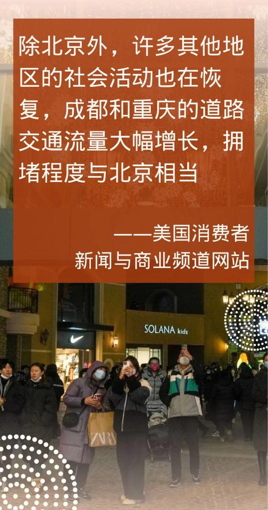 一些境外媒體近日發(fā)文稱,已經(jīng)渡過疫情高峰的北京,城市交通運(yùn)輸和人員流動等情況出現(xiàn)明顯好轉(zhuǎn),釋放出復(fù)蘇的積極信號。