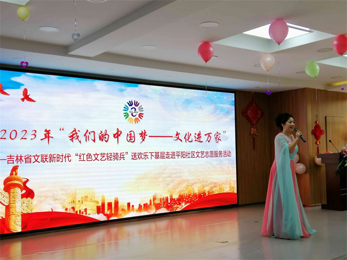 京劇、雜技、歌舞……在平陽社區二樓多功能廳,吉林省文聯新時代“紅色文藝輕騎兵”小分隊的精彩演出,贏得陣陣掌聲。參加活動的文藝志愿者高子童是一位青年歌唱家、國家一級演員,她開心地說,“剛才看到參加活動、觀看演出的觀眾非常多,也特別熱情,這讓我深刻體會到,隨著人們生活水平的提高,大家更渴望藝術,更需要精神力量,人們的需求,就是我們的價值,這也確定了我們文藝志愿者的方向,我們會創作更多更貼近群眾的好作品,奉獻給大家。”