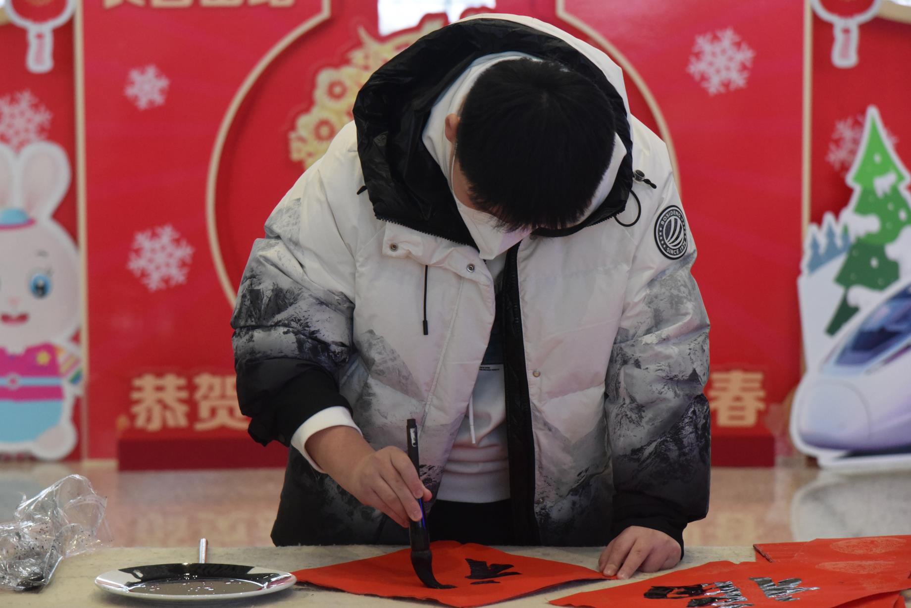 走進(jìn)長白山高鐵站候車大廳,記者看到書法家們正揮毫潑墨,現(xiàn)場為往來旅客及工作人員創(chuàng)作春聯(lián),一幅幅喜氣洋洋的春聯(lián)、一張張紅彤彤的福字,一股股濃郁的翰墨香氣,傳遞著迎新納福、期盼新生活的美好愿望,為大家送去了新春的“好彩頭”。