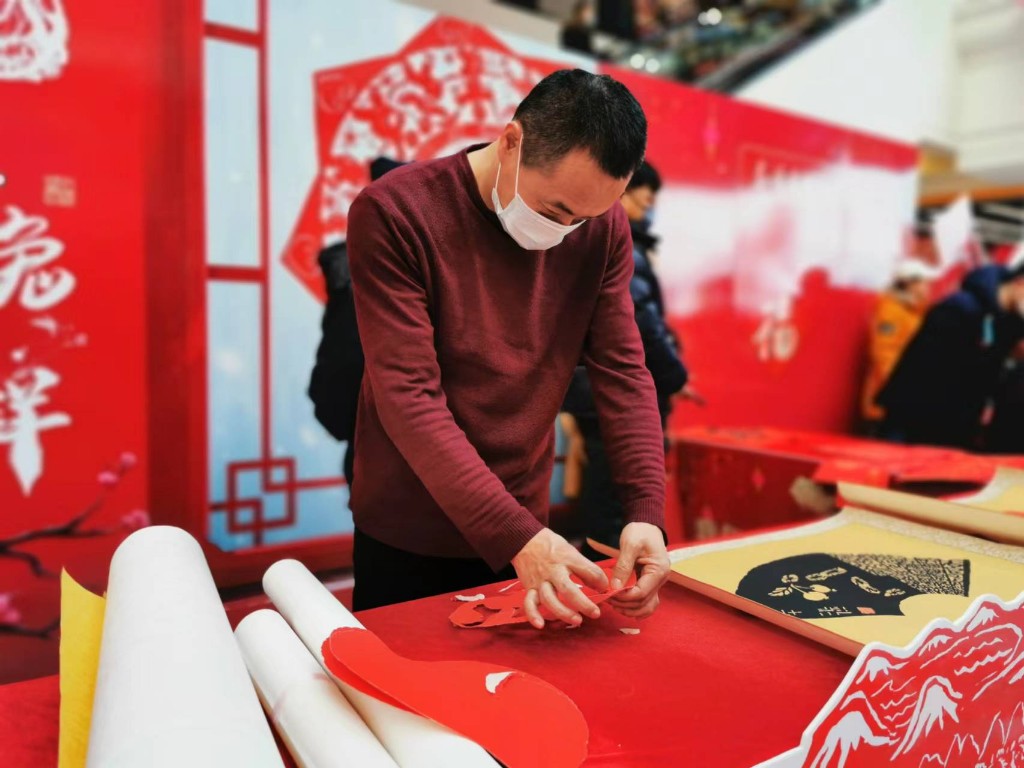 另一邊,非遺文化展區兼具顏值與內涵,省級非物質文化遺產《長白山滿族撕紙》項目傳承人張杰現場創作滿族撕紙作品,十分“吸睛”。