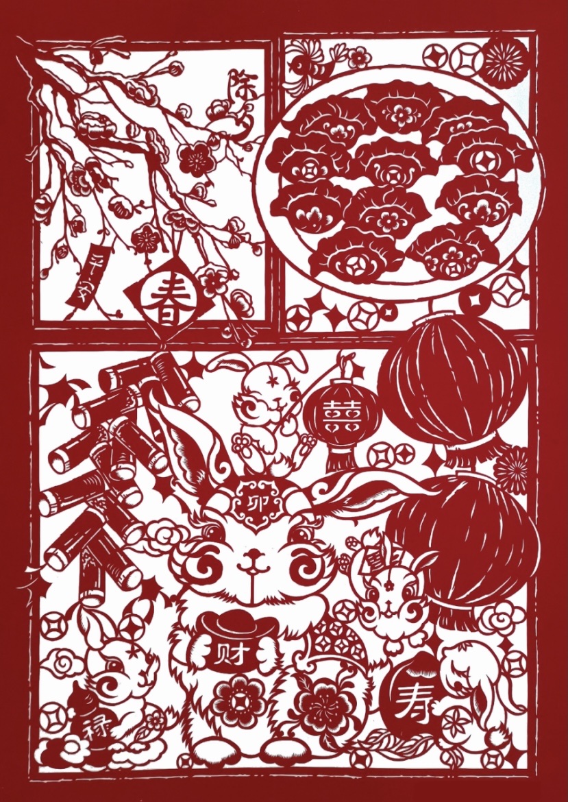 一只只可愛的兔子銜來祥瑞,一幅幅美麗的剪紙滿載祝福。一元復始,萬象更新,讓我們盡情播灑豐收的喜悅,讓我們共同迎來燦爛的一年,祝愿大家前“兔”似錦,幸福安康!