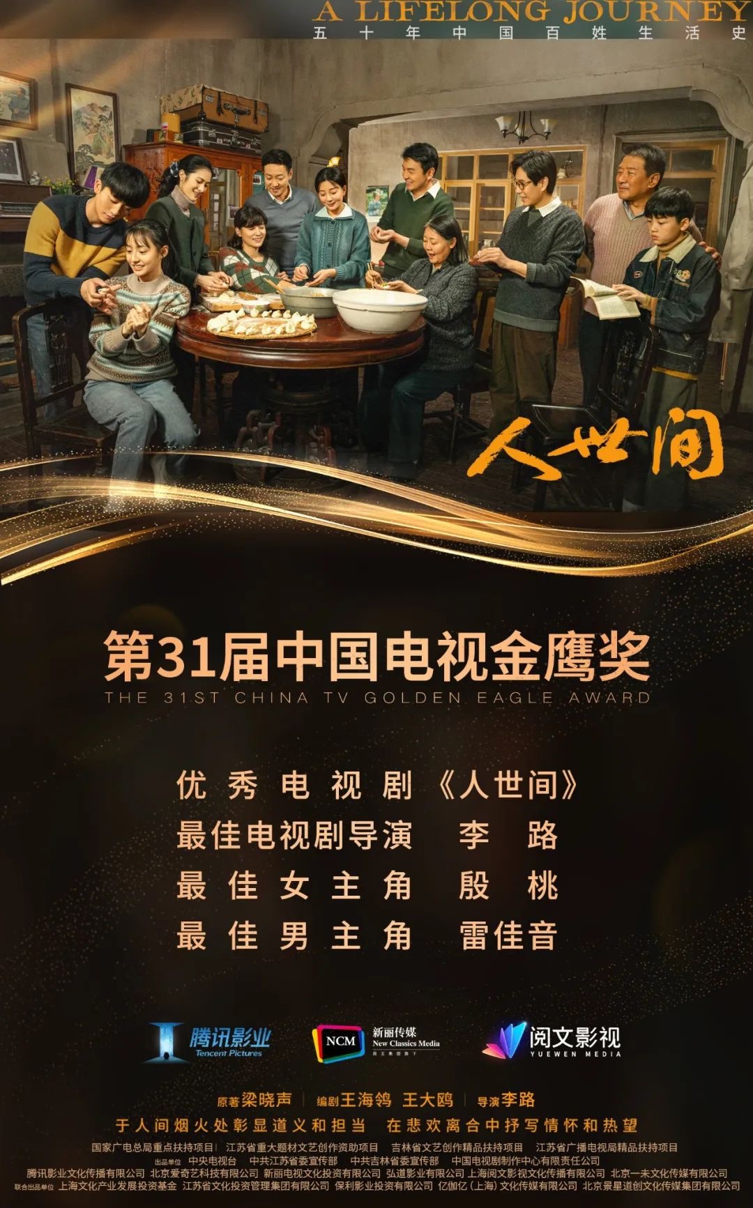 在2022年11月舉行的第31屆中國(guó)電視金鷹獎(jiǎng)評(píng)選中,《人世間》憑借7項(xiàng)提名、4項(xiàng)大獎(jiǎng)成為本屆金鷹獎(jiǎng)獲得提名及獎(jiǎng)項(xiàng)最多的作品。除“優(yōu)秀電視劇”獎(jiǎng)外,導(dǎo)演李路、演員殷桃、演員雷佳音憑借該劇分別榮獲“最佳電視劇導(dǎo)演”“最佳女主角”“最佳男主角”獎(jiǎng)項(xiàng)。