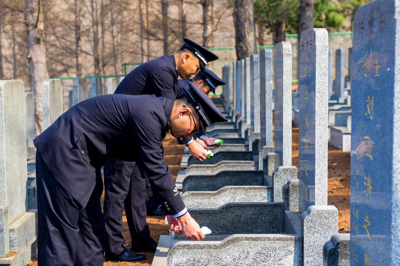 “無論處在哪個時代,革命先烈的事跡和精神,都是激勵廣大移民管理警察維穩固邊、忠誠為民的強大動力。這次祭掃,既是傳承和發揚先輩遺志的一次精神洗禮,更是我們持續踐行移民管理警察職業精神、強力推進隊伍發展建設的有利抓手,為不斷提升移民管理培訓機構專業水平、積極提高邊境維穩力量能力素質奠定堅實的思想政治基礎。”該輪訓隊政治教導員金浩哲說。