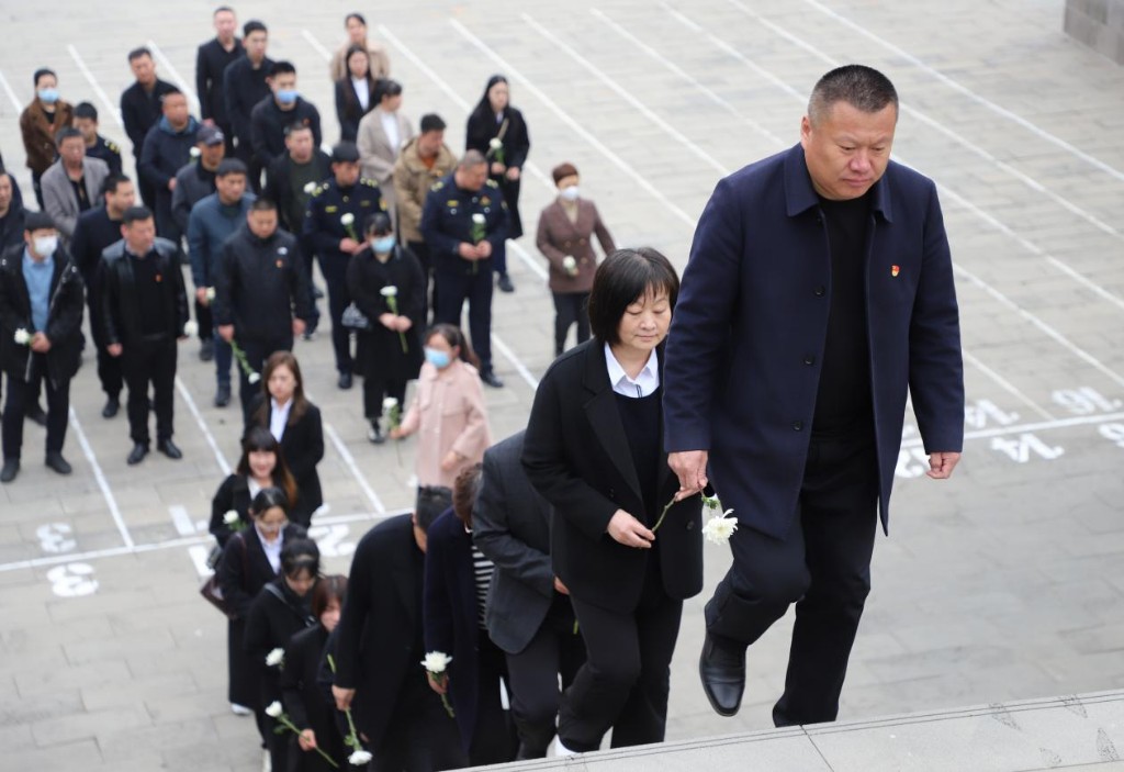 全體人員通過默哀、敬獻鮮花等方式表達了對革命烈士的的沉痛哀悼和無限追思。隨后,全體黨員干部高舉右拳在革命烈士紀念館前重溫入黨誓詞并參觀了烈士陵園紀念館。