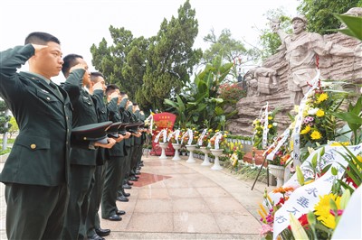 4月4日,第73集團軍某旅組織官兵赴福建省廈門市鼓浪嶼英雄山革命烈士陵園祭奠先烈。