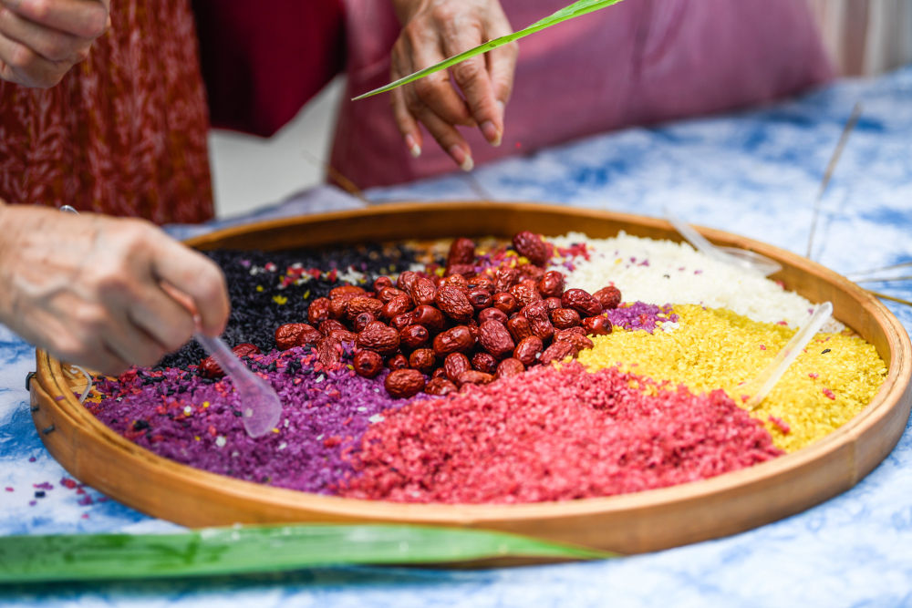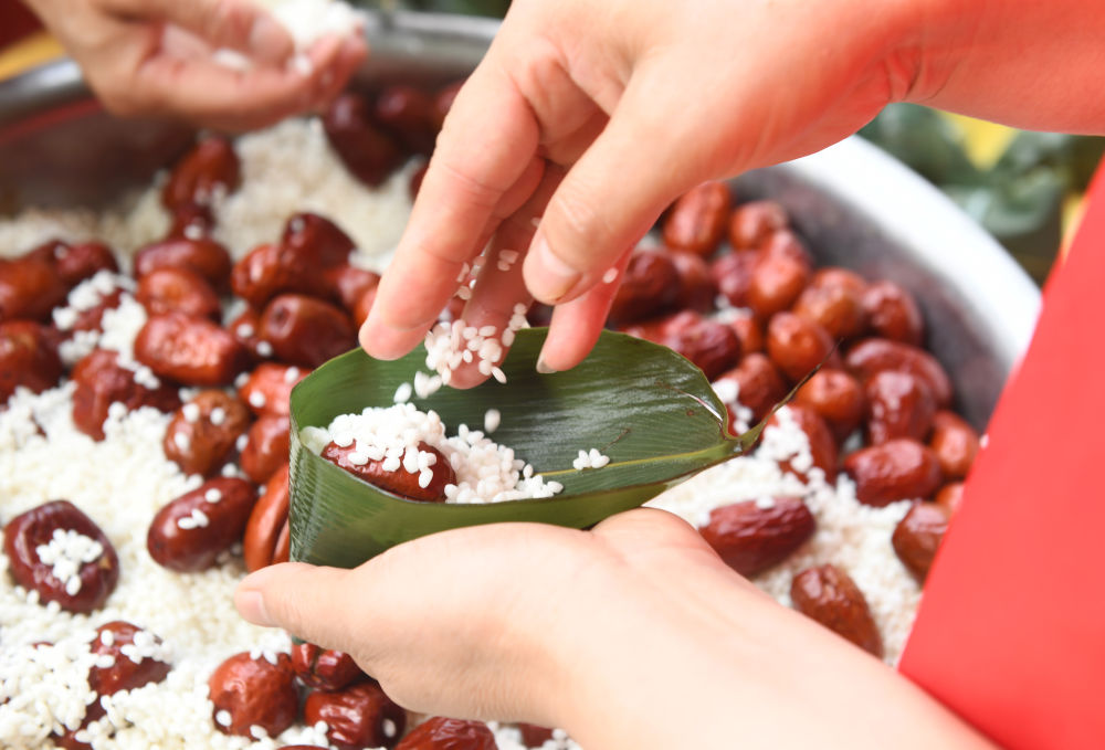 宋人歐陽修的《漁家傲》描繪出端午佳節的熱鬧景象,“五色新絲纏角粽”,包粽子是我國重要的端午習俗。人們包粽子、迎佳節,神州處處飄粽香。
