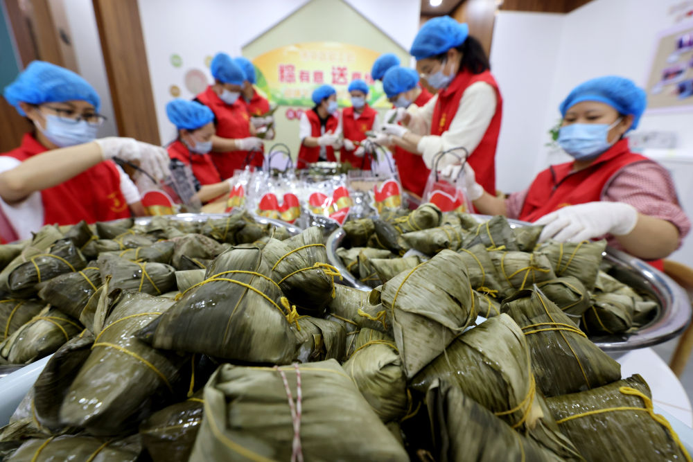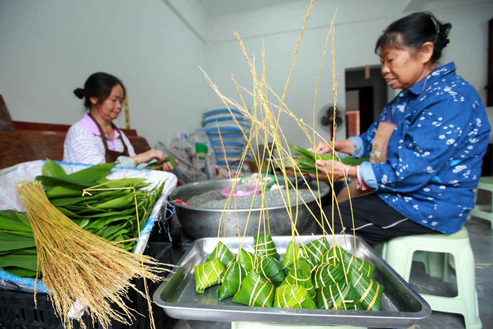 6月18日,江蘇省海安經濟技術開發區七星湖社區居民在包粽子。新華社發(向中林 攝)
