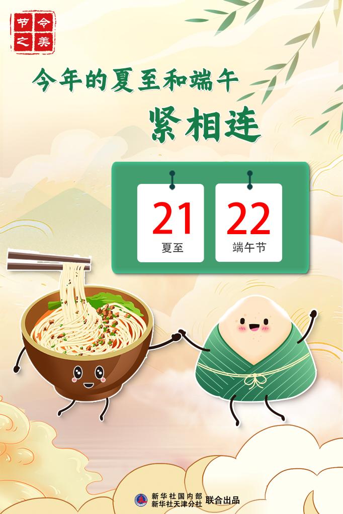 夏至,是北半球一年之中白晝最長、夜晚最短的一天,我國大部分地區在這一天都十分流行吃面的習俗;端午節是我國首個入選世界非物質文化遺產的節日,在這一天民間有吃粽子的習俗。