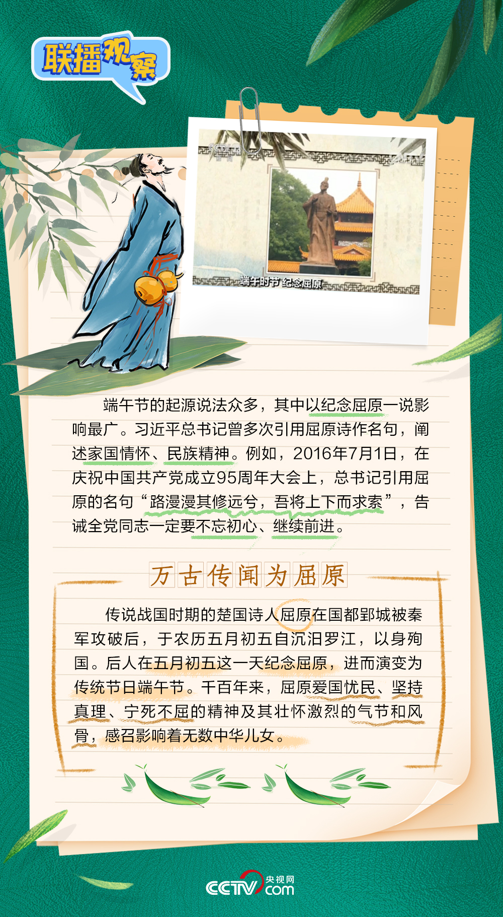 習近平總書記曾在多個場合對端午節的傳統習俗、文化標識傾注關懷。央視網《聯播+》特推出海報,與您品習俗、度佳節。