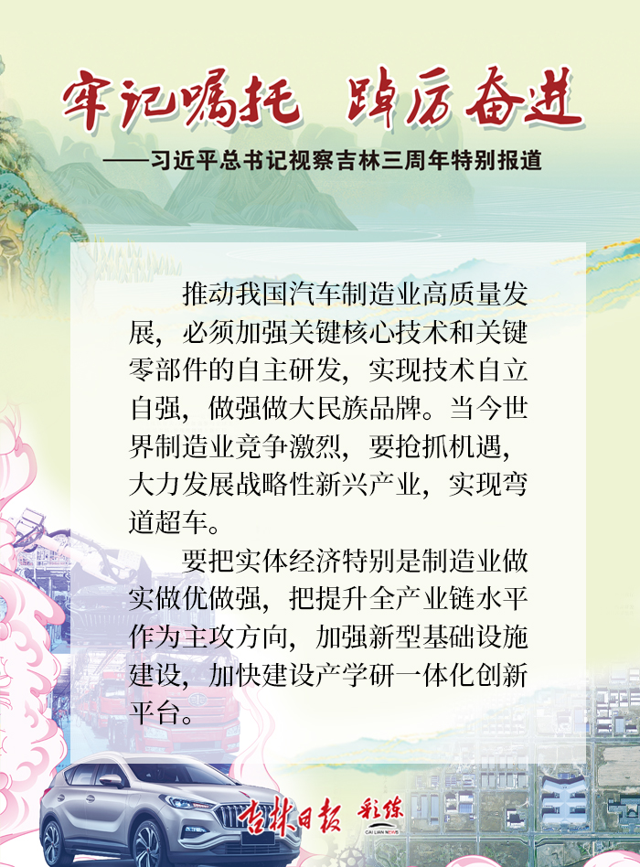 “三年來,中國一汽深入貫徹落實習近平總書記視察一汽重要講話精神,堅定不移走自主創新道路,在關鍵核心技術上奮力攻堅,民族汽車品牌強勢崛起。”吉林大學經濟學院院長丁一兵看到一季度我省汽車產業發展數據時感慨道:“2020年習近平總書記來到中國一汽集團研發總院視察的殷殷囑托,為吉林汽車產業指明了高質量發展的方向,吉林汽車產業正走在創新重塑的通途之上。”