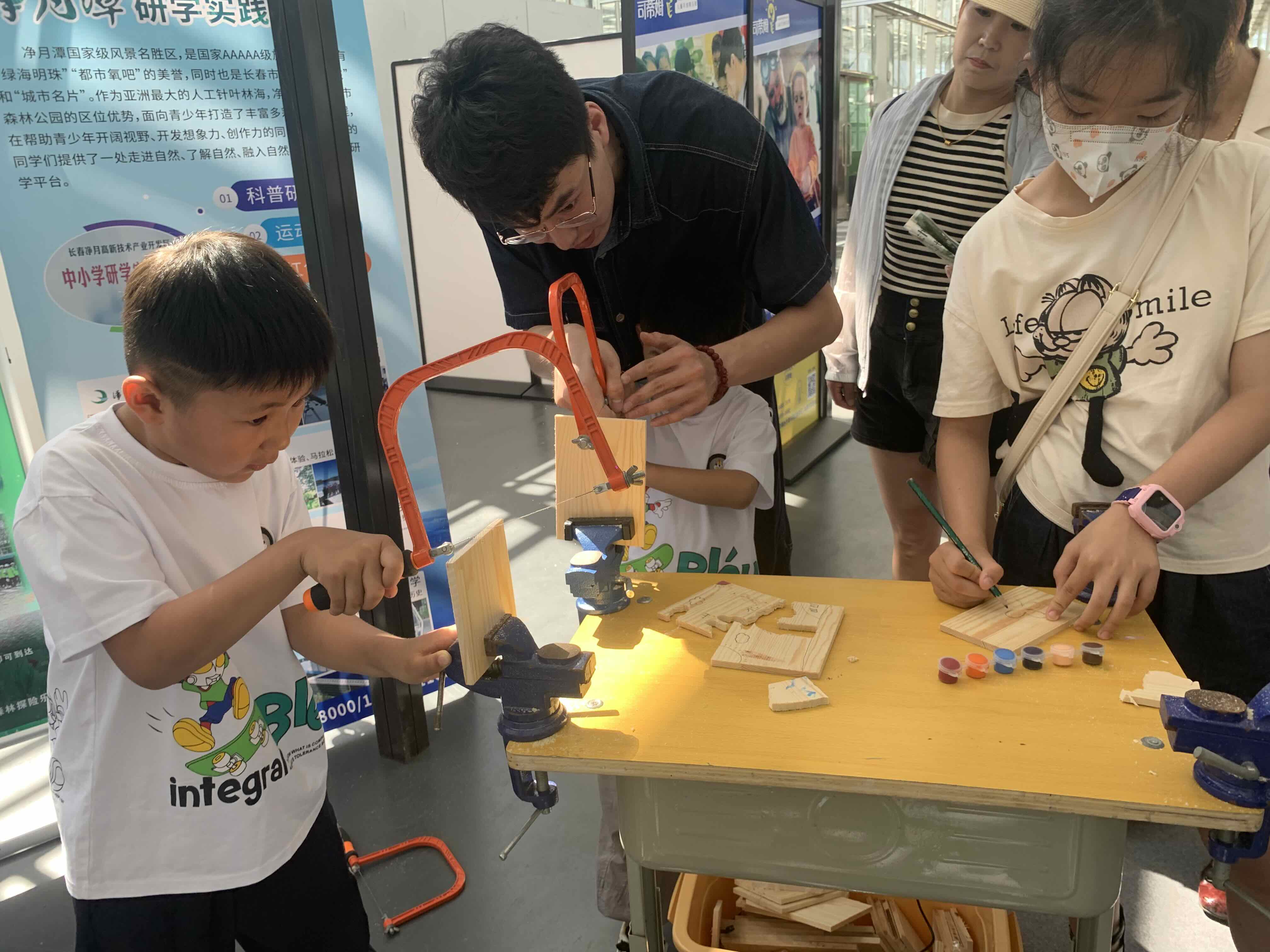 歲歲耕耘,田間地頭灑下辛勤汗水;匠心雕琢,廠礦車間施展精湛技藝;冰心一片,實驗室里勇攀科學高峰。勞動改變世界,勞動創造文明。從古至今,中國人民都熱愛勞動,最美勞動者的身影就在我們身邊。在農博會上,小朋友既學會了農業知識,他們在農博會的勞動實踐現場,當起了“能工巧匠”,開心的學起了木工,老師們手把手教,傳授勞動技能,讓孩子在勞動中尋找樂趣!