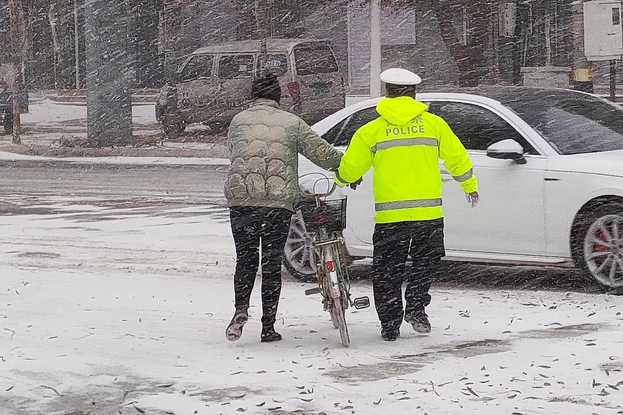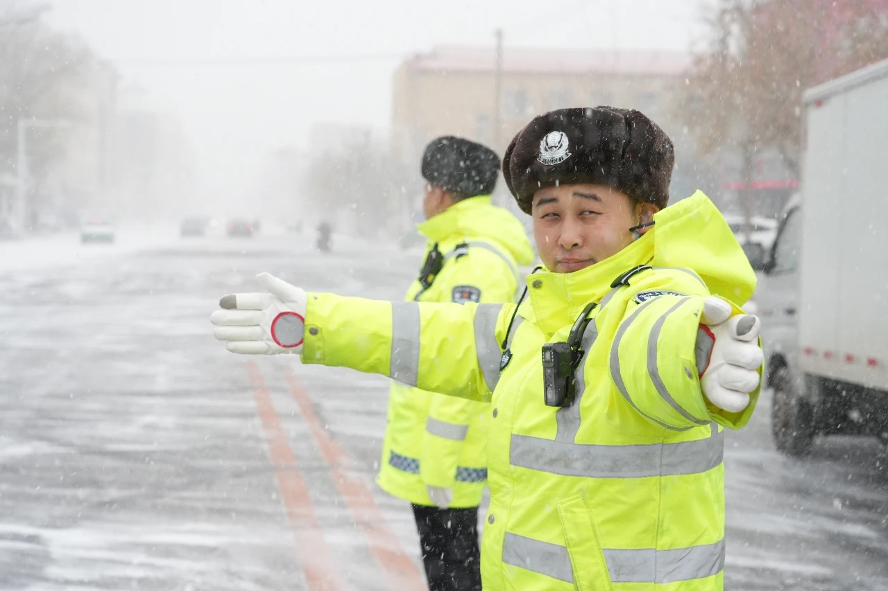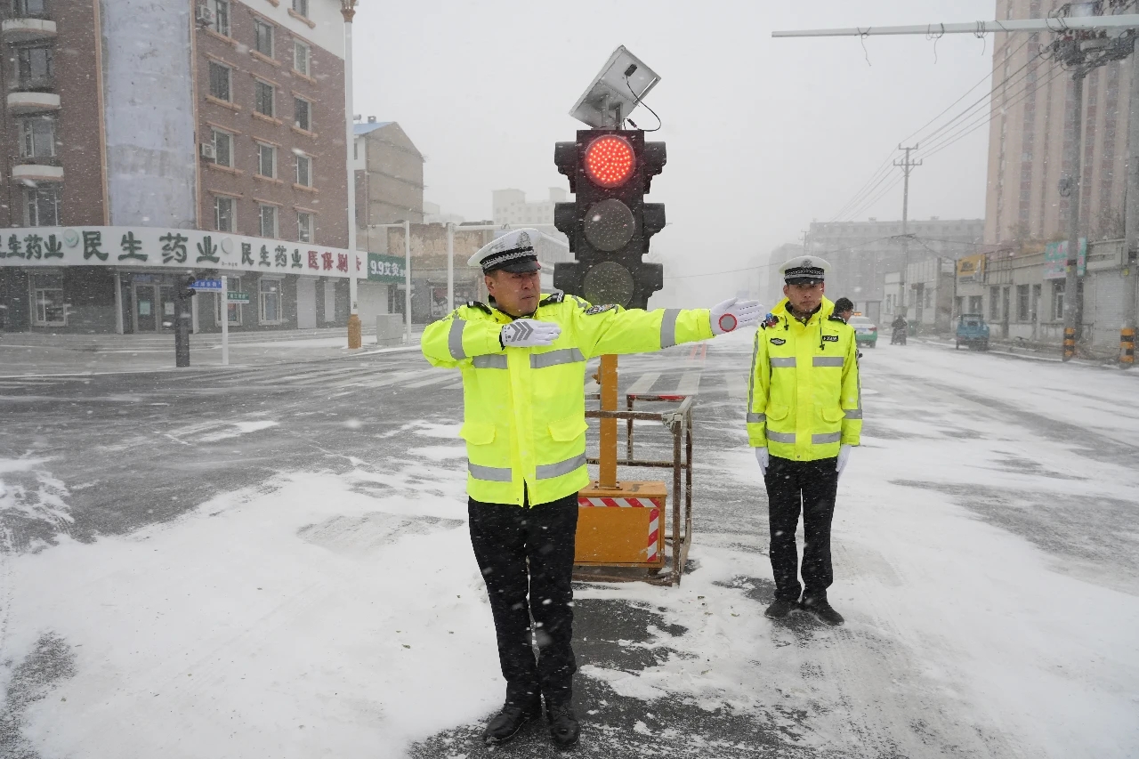 全體民警輔警不畏嚴寒,頂風冒雪,堅守在各自的崗位上,默默維護著道路交通秩序,暖心守護著廣大人民群眾平安出行、安全回家。