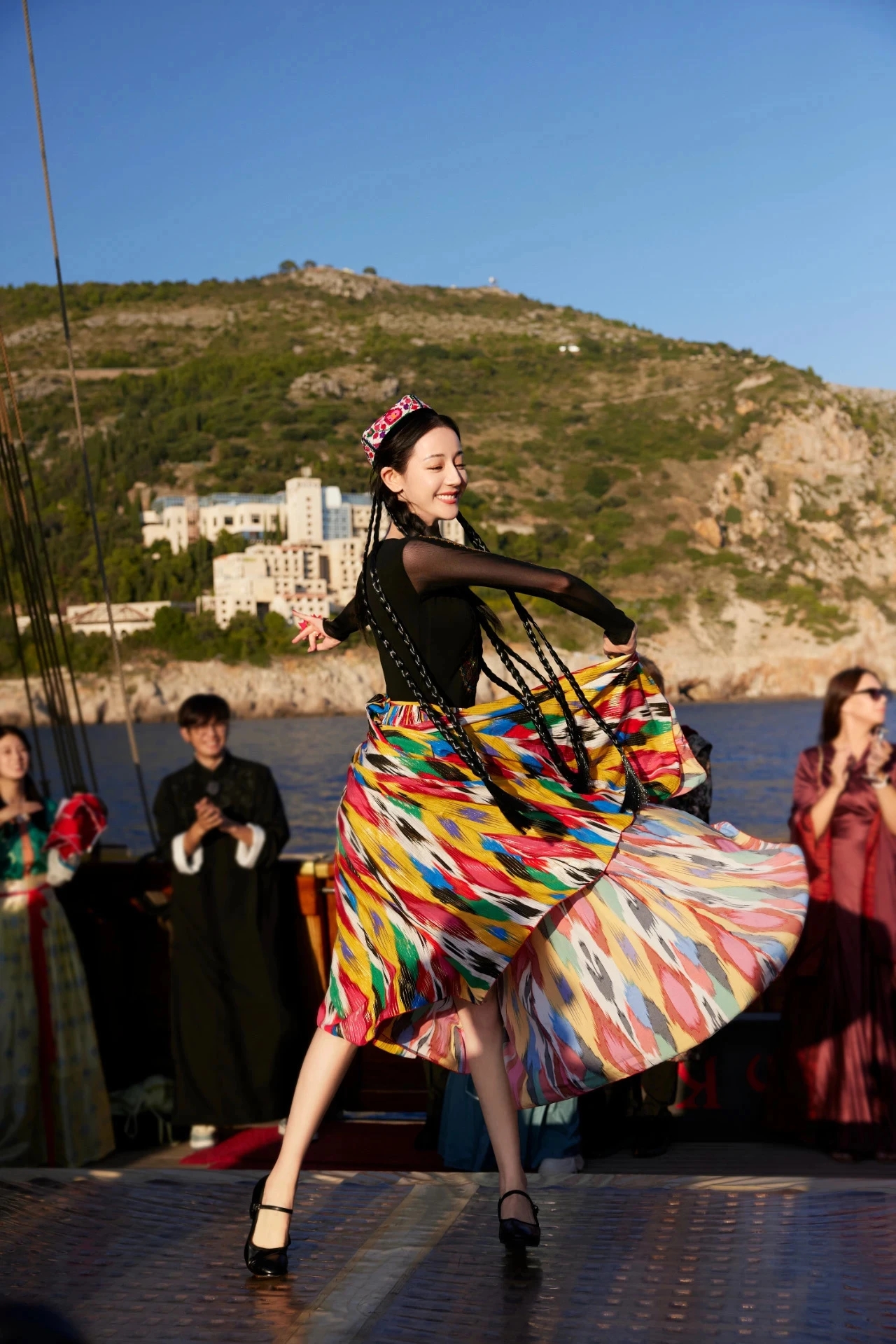 在克羅地亞,迪麗熱巴身著維族傳統服飾表演的新疆少數民族的傳統舞蹈引起了海內外網友的熱議。不僅在國內社交媒體上登陸熱搜,中國新疆網也在其官方推特賬號發布這段舞蹈視頻并配文:“迪麗熱巴跳新疆舞,透過旋轉的舞步傳遞民族文化魅力。”隨即,中國駐克羅地亞大使館等各大中國駐外大使館官方推特賬號先后轉發該貼,為中國新疆的文化瑰寶傳播助力。外交部發言人汪文斌也在其Facebook上發布:“穿著新疆服飾跳著新疆舞蹈的迪麗熱巴,閃耀著光芒!”海外網友為中國的民族舞蹈的優美典雅以及中國傳統服飾的精美絕倫而贊嘆,紛紛留言:“感受到了中國民族文化的魅力。”